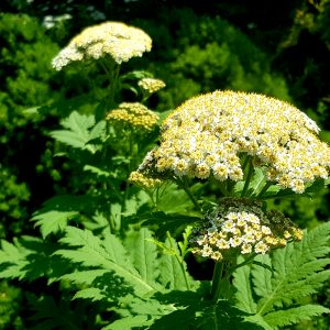 Aukštaūgė – 80 cm aukščio gėlė išraiškingais lapais ir neįprastais baltais skėčio pavidalo žiedynais, kurie pražysta birželio pabaigoje ir žydi apie mėnesį. Nereikli, mėgsta šviesią vietą. Geriau auga trąšioje, drėgnoje dirvooje, bet pakenčia ir skurdesnes, sausesnes ietas.