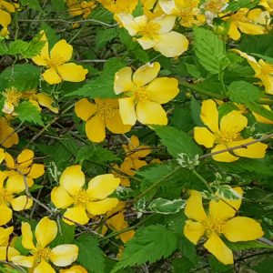 Grakštus 1-1,5 metrų aukščio krūmas išsišakojusiomis liaunomis šakelėmis, kurios net žiemą išlieka žalios spalvos, o vasarą puošia 3-4 cm skersmens ryškiai geltoni žiedai. Žydi gegužės – birželio mėnesiais, pakartotinai – rudenį. Nereikli dirvai, tačiau geriau jaučiasi daliniame pavėsyje, normalaus drėgnumo ir derlingumo, neutraliame dirvožemyje.