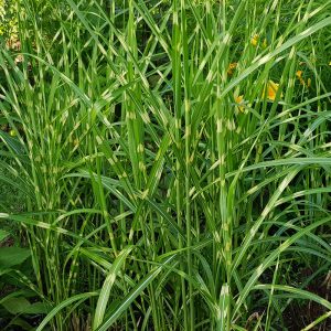 Puošnus keras, margais (gelsvais dryžiais) lapais, gali užaugti iki 150 cm. Pražysta rugsėjo – spalio mėnesiais. Geriausiai auga saulėtoje, šiltoje vietoje, laidžioje, apydrėgnėje, derlingoje dirvoje.