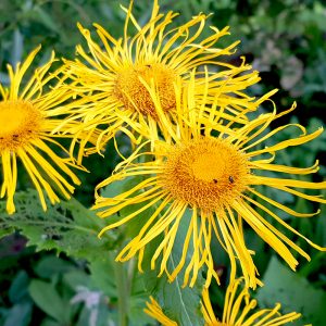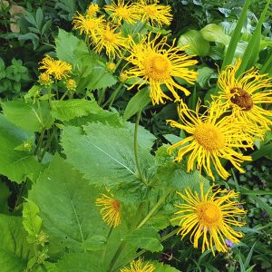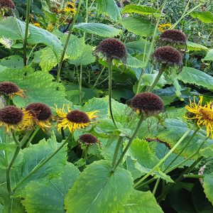 80-100 cm. aukščio, tvirtas stambus keras, dideliais apvaliais lapais. Žydi liepos pabaigoje, rugpjūtį dideliais geltonais ramunės formos iki 10 cm skersmens žiedais. Gražiai atrodo ir nužydėjusi. Nereiklus, ypatingos priežiūros nereikalaujantis augalas. Mėgsta saulę, labiau – pusiau pavėsį, derlingą, drėgoką dirvą.