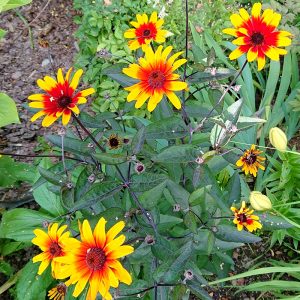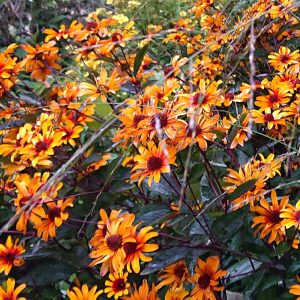 Aukšti – apie 1,5 metro tamsūs raudonai rudi stiebai ir lapai. Žydi gausiai ir ilgai nuo liepos pabaigos iki vėlyvo rudens. Žiedai ryškiai geltoni su ryškiu raudoniu aplink tamsų viduriuką. Auga saulėtoje vietoje. Dirvai nereiklus, tačiau lengviau ištvers sausras nei užmirkimą.