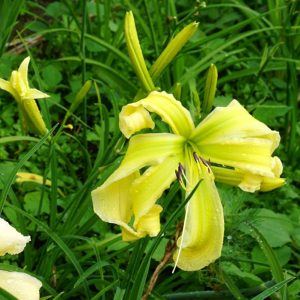 Žiedai stambūs (18 cm skersmens), kaskadiški, žalsvai gelsvi su baltu apvadu. Aukštis – 100 cm. Vidutinio ankstyvumo. DIP.DIU. Iš dalies nunykstanti.